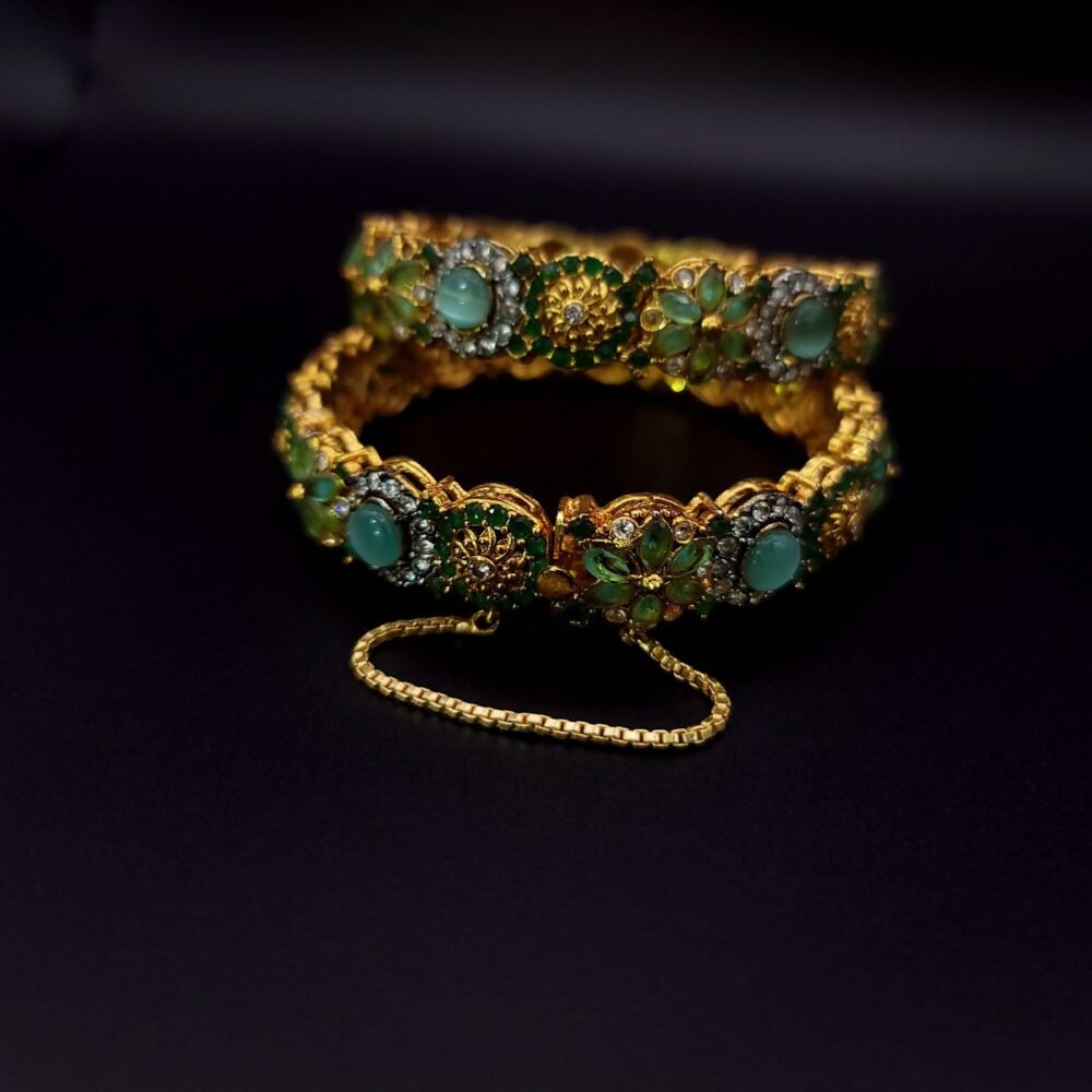 These are bangles embellished with green and frosty stones.