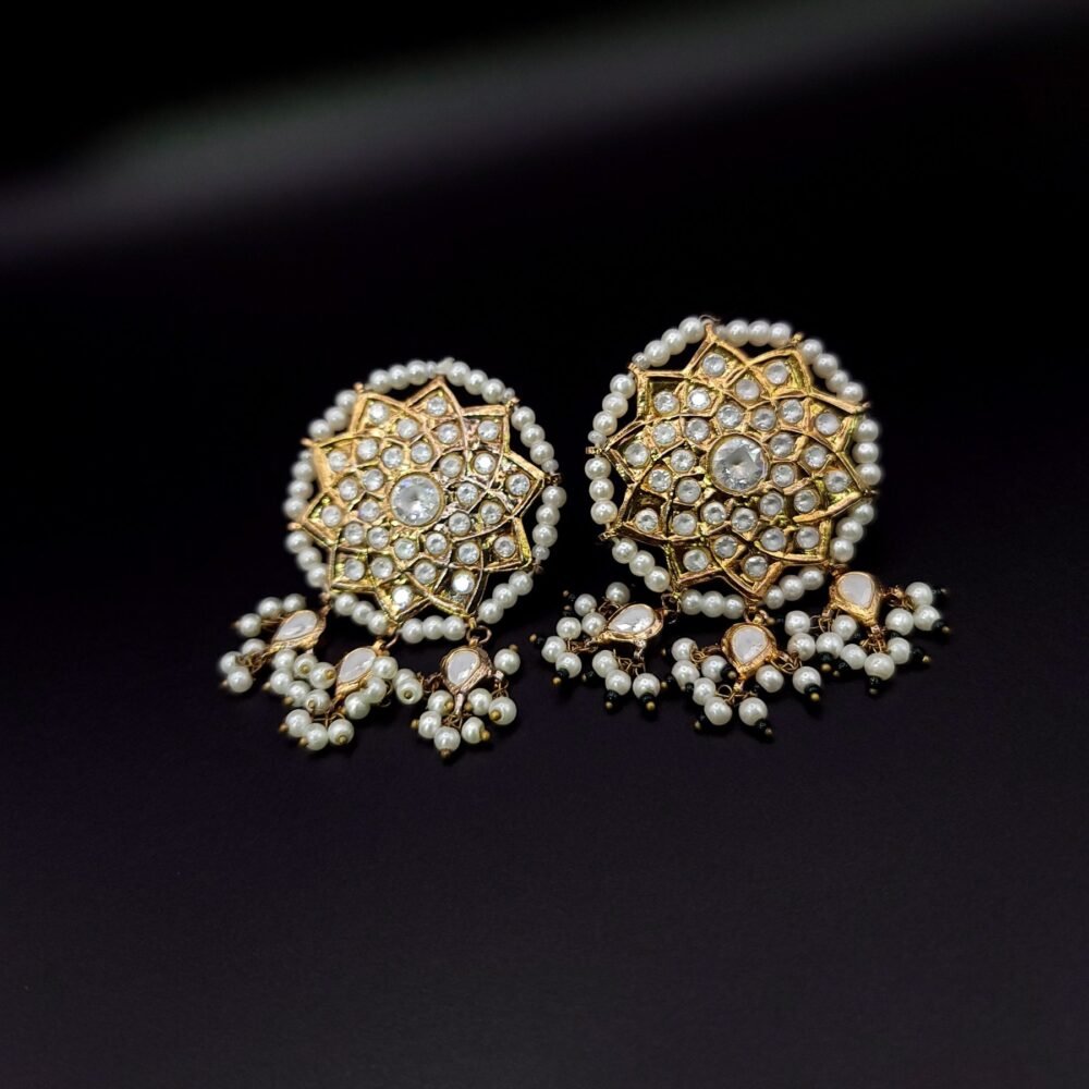 timeless elegance with these round earrings, beautifully adorned with sparkling white zircon stones and a classic white pearl at the center.