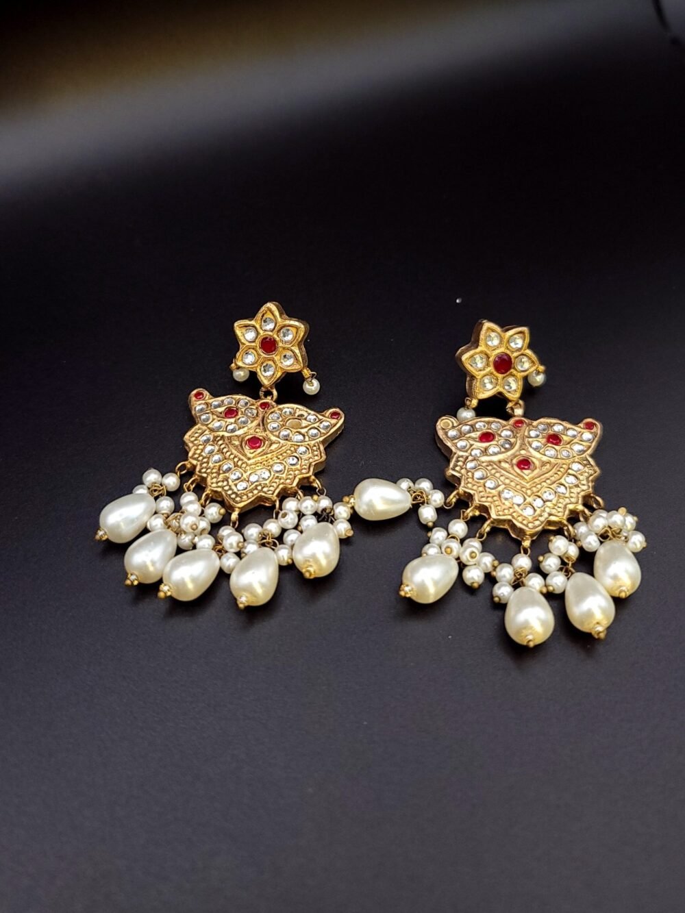 Beautiful Earings red stones looks Royal with pearls.